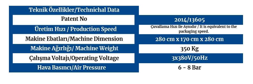 otomatik olarak palete dizen bir makinedir. Dolan çuval tartımı