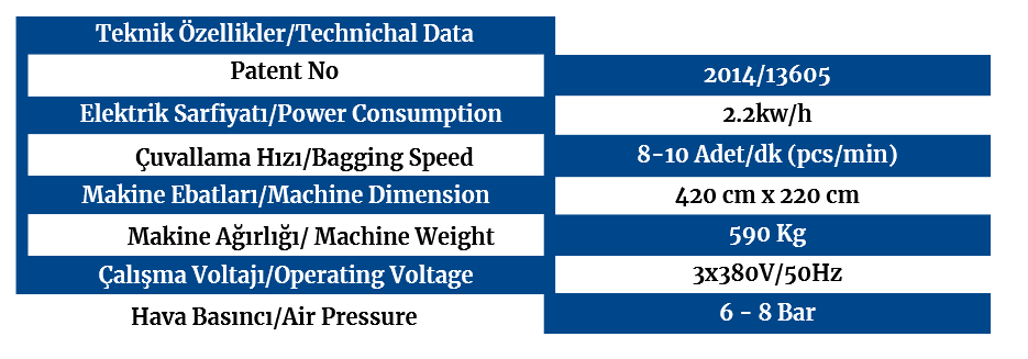 devralarak, belirlenen konfigürasyonlarda çuvallara doldurur.